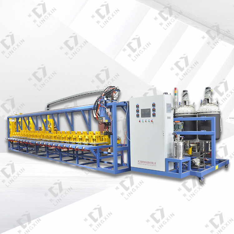 The production of high resilient polyurethane insole can be made by two-component low-pressure foaming machine of high resilient polyurethane insole or automatic production line of high resilient polyurethane insole. The pictures of the machine are as follows: